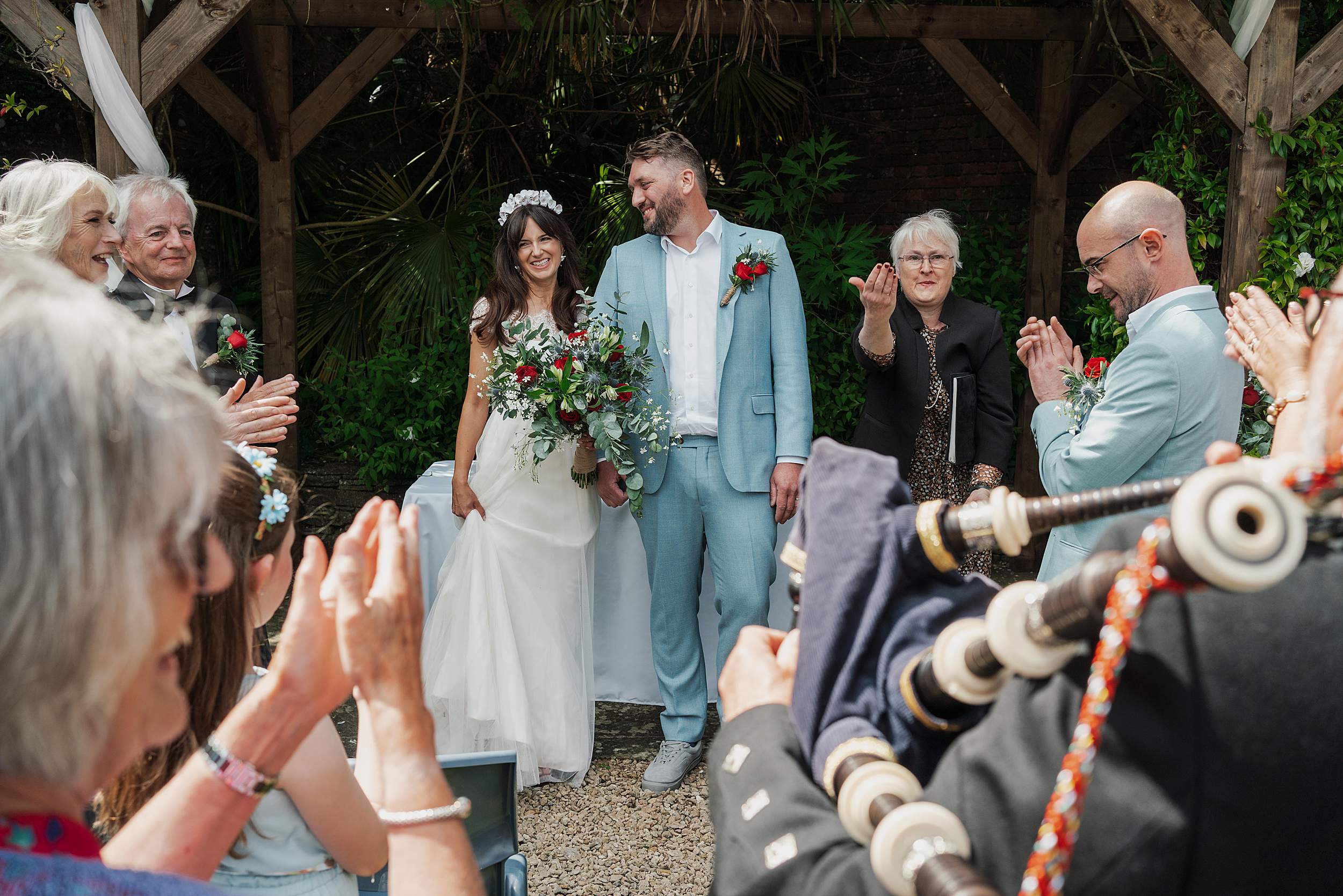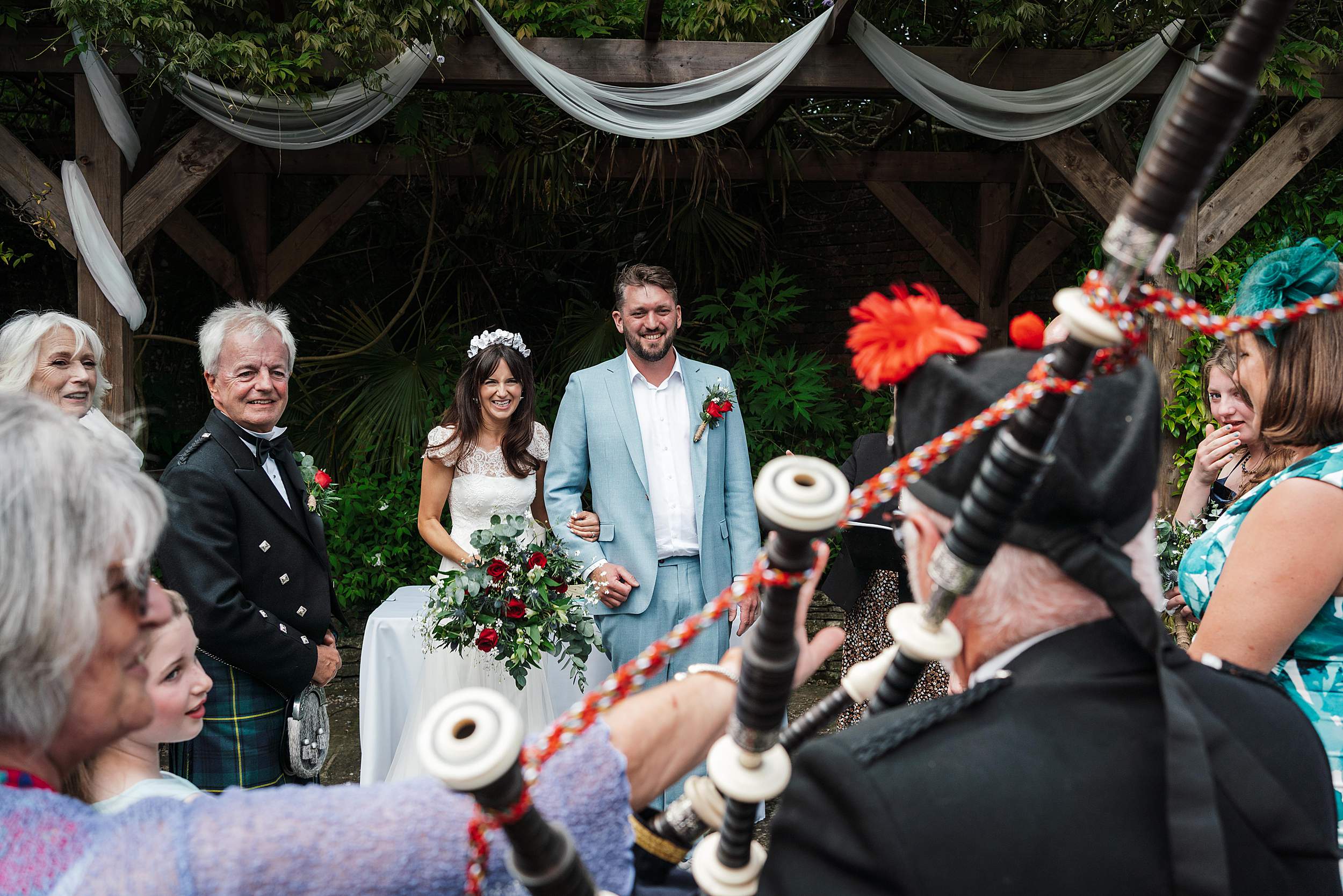 The ceremony - heart-shaped sunnies and a piper’s welcome
