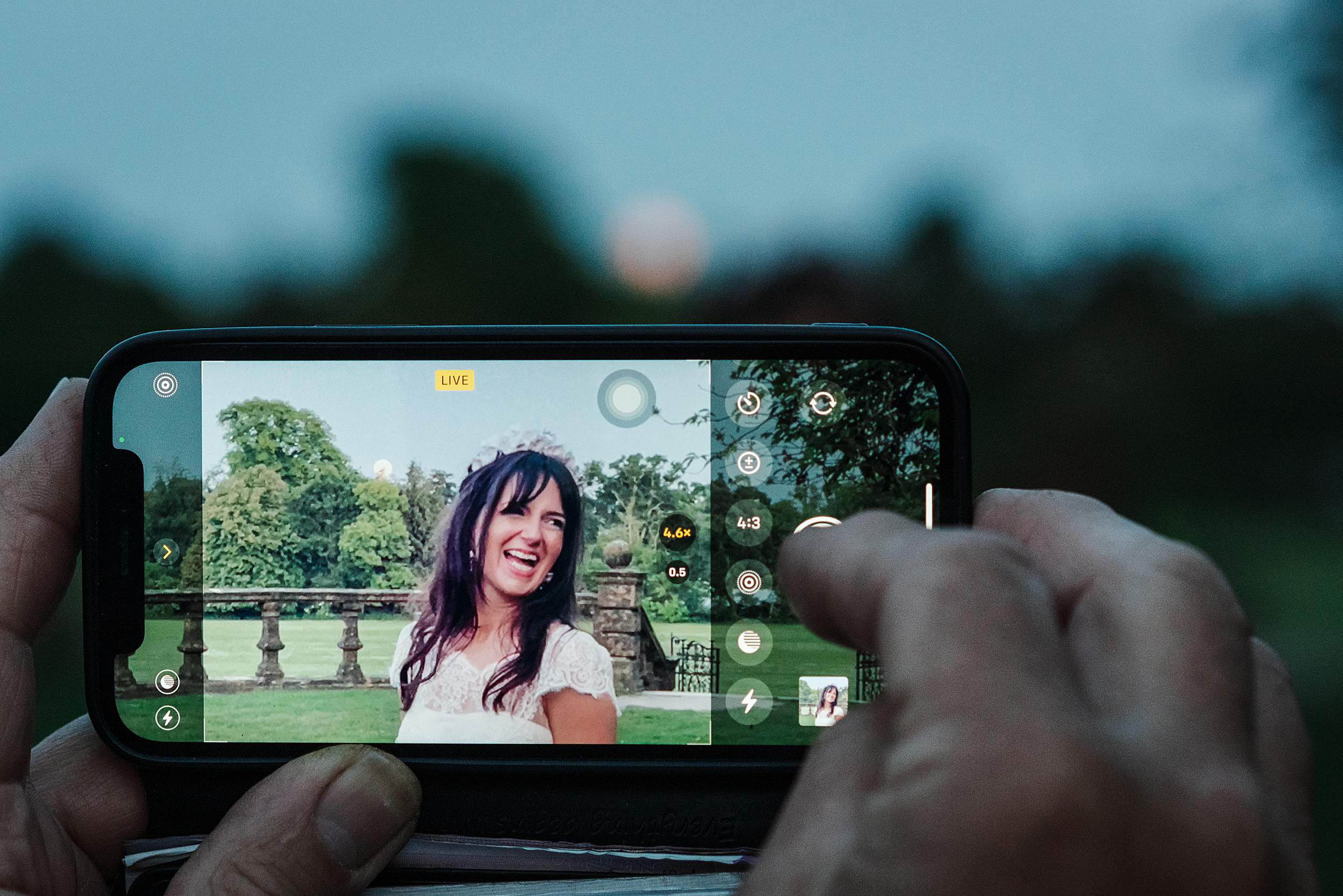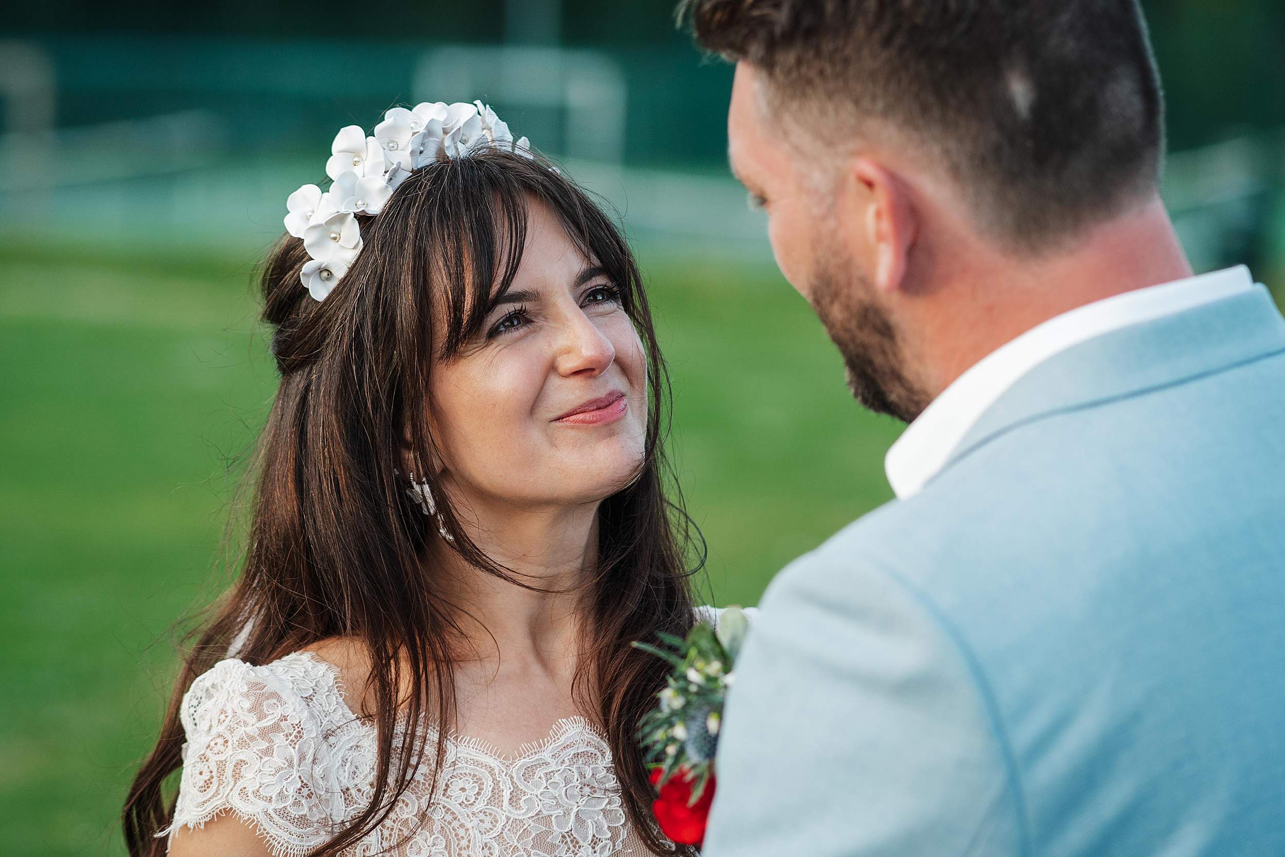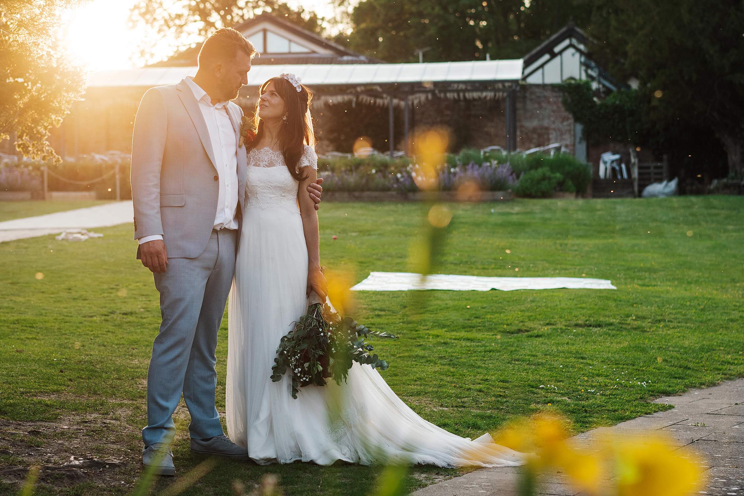As the light softened, we stole Fi & Tim away for a few gently led portraits out on the school playing fields. Nothing heavy, nothing staged – just a short breather and some space to be together, with golden hour doing what golden hour does best.