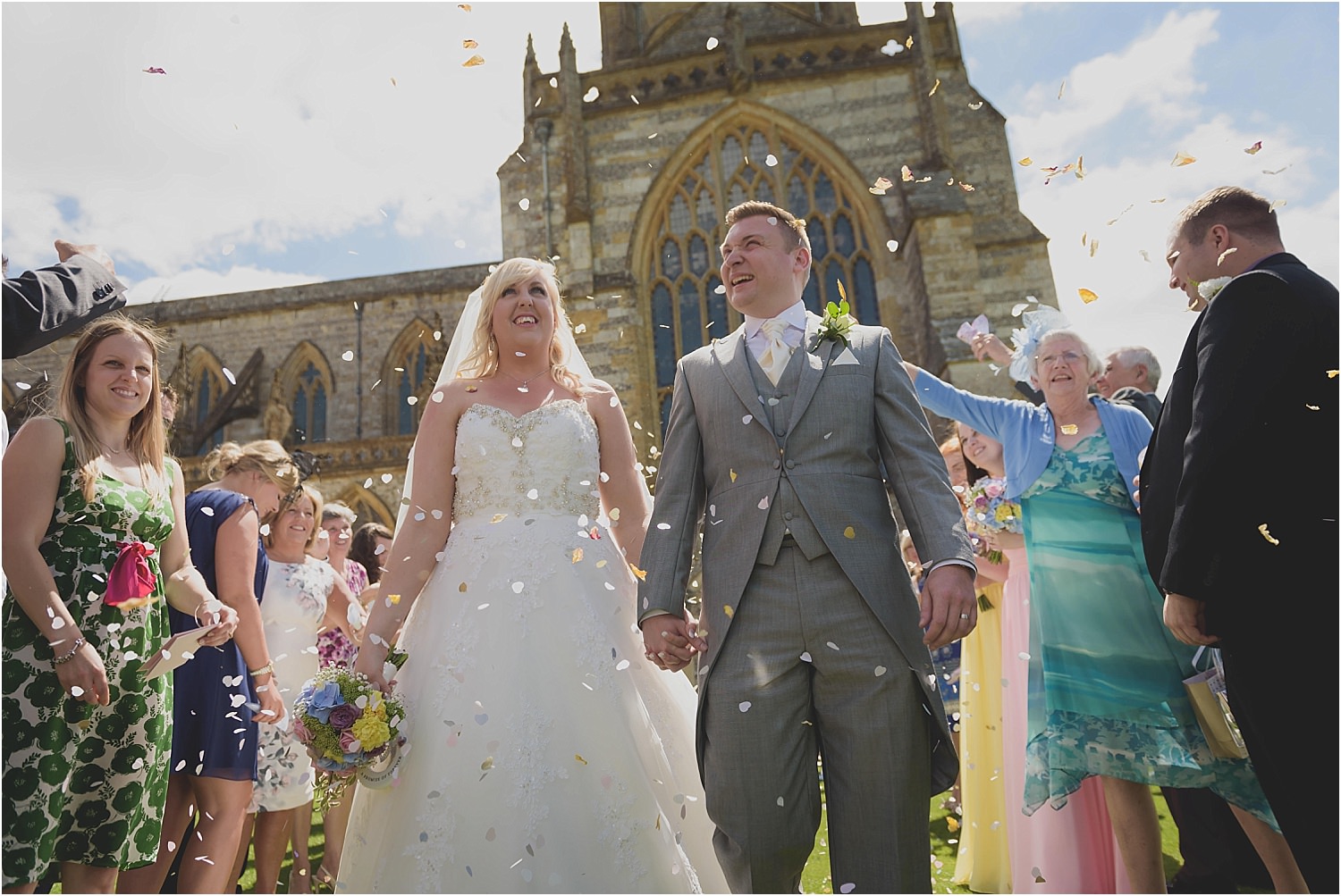Emily and Luke’s day was one defined by colour. Blue skies, bright sunshine and an abundance of pastel colours.