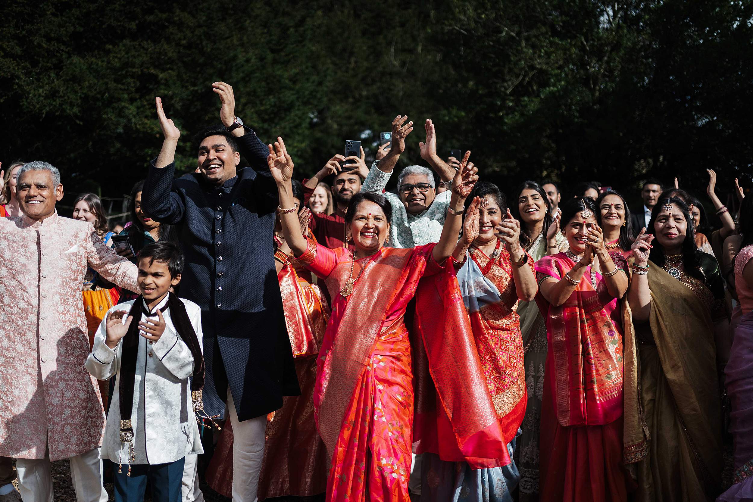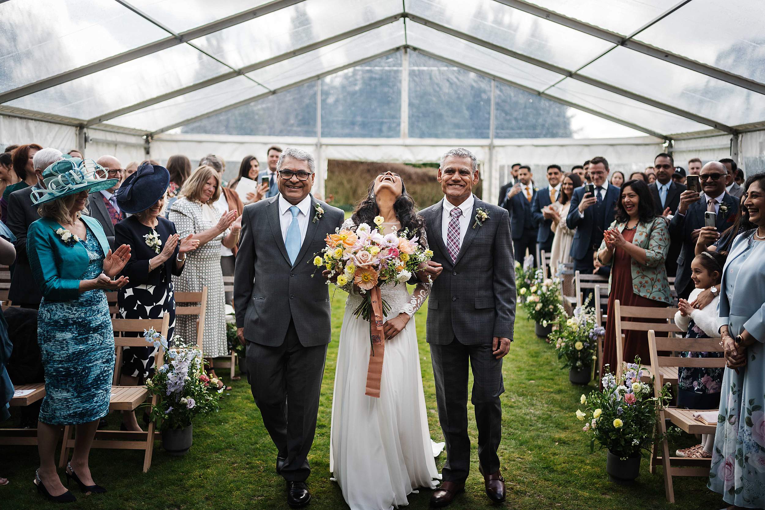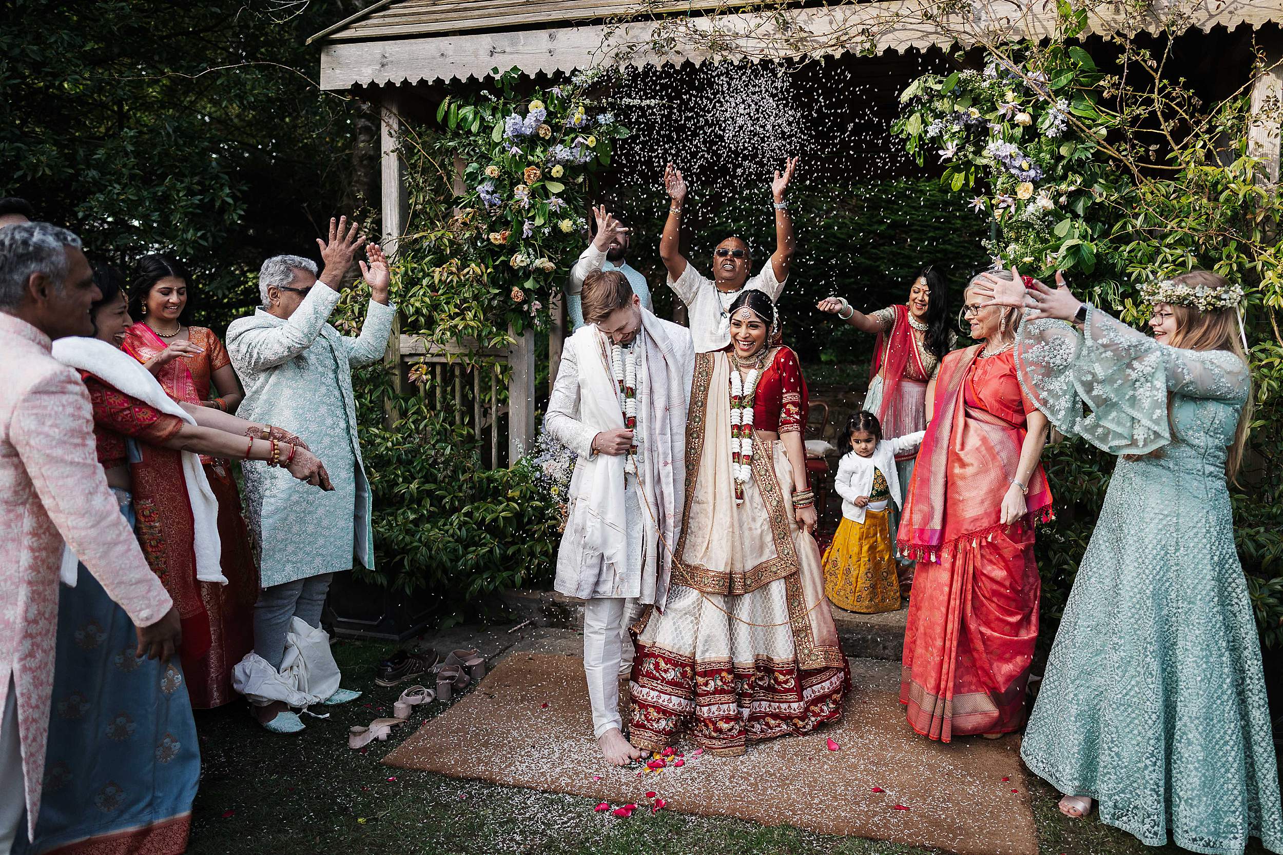 Confetti run – a handful of key family group photos – then guests were into drinks while Payal and Tom (and the central players around them) disappeared to change into Indian attire for the second ceremony.